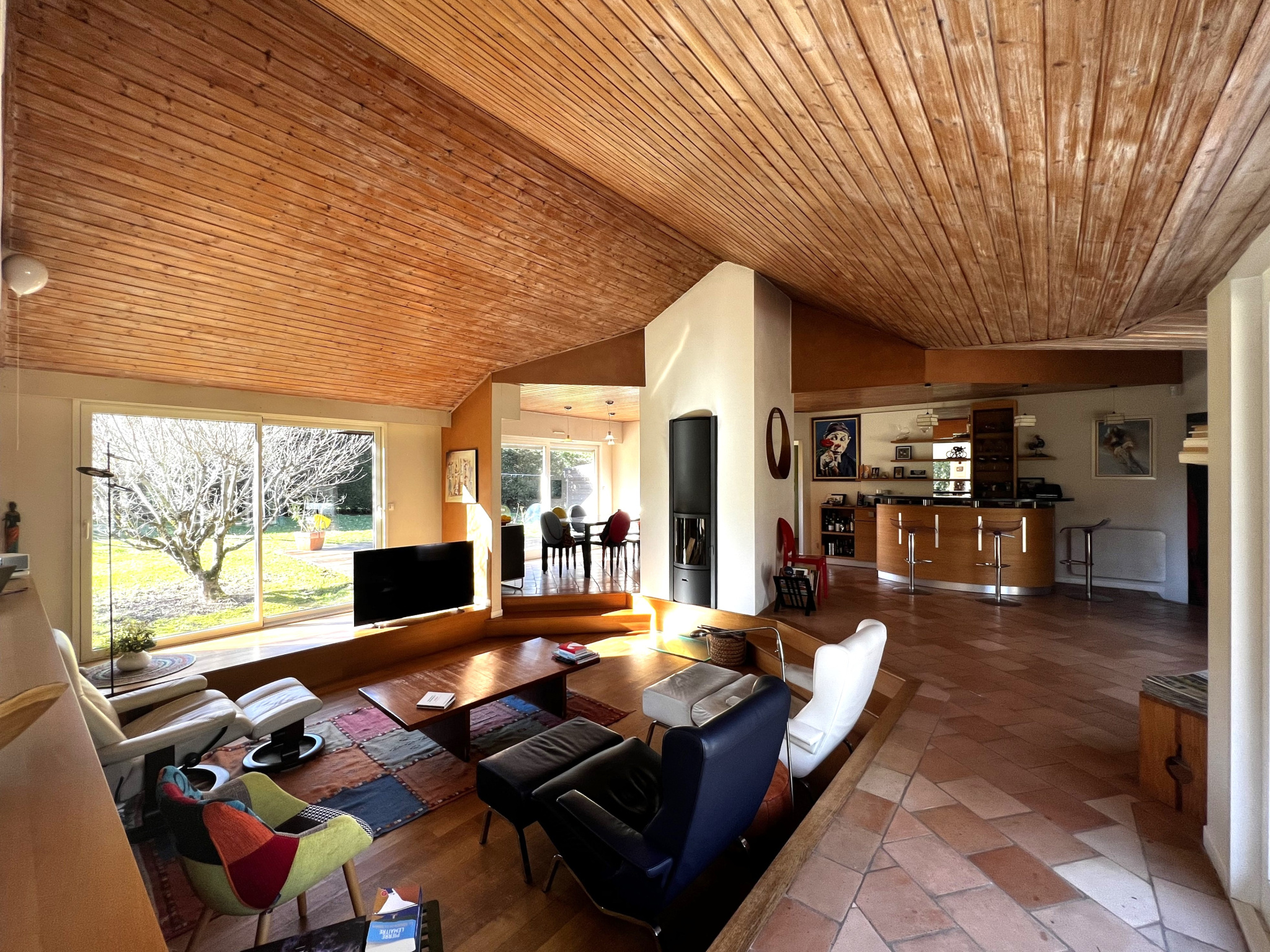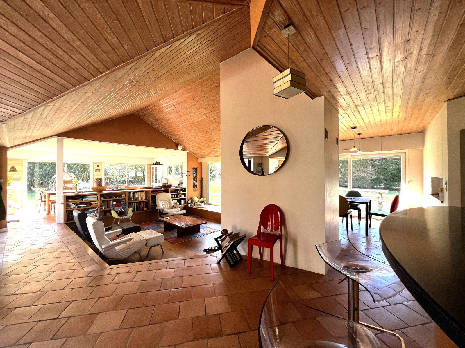 - une pièce de vie de plus de 90 m², exposée Est – Sud – Ouest, bénéficiant de larges ouvertures sur la nature environnante ;