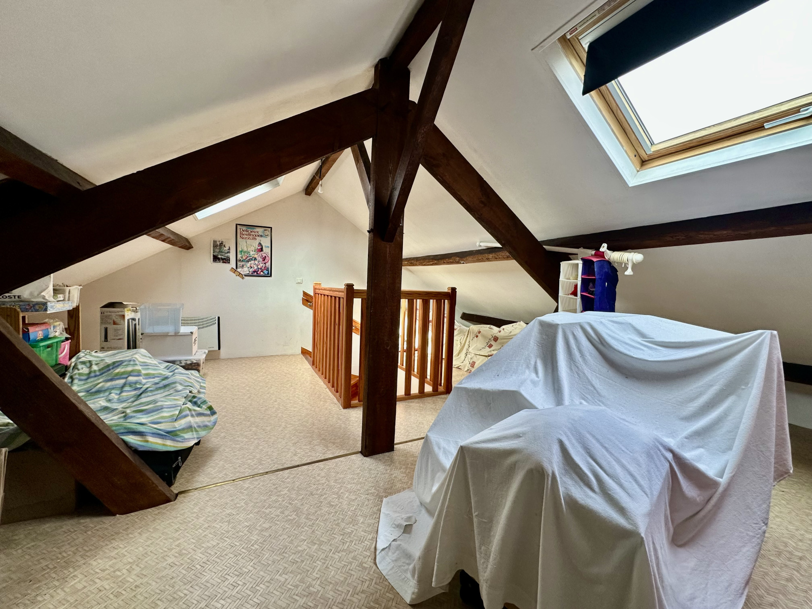 Elle offre une pièce de vie cathédrale avec cheminée insert, une cuisine équipée donnant sur la terrasse, quatre chambres et un bureau, une salle de bains et une salle d’eau ainsi qu’un vaste grenier de 40 m2 au sol facilement aménageable.