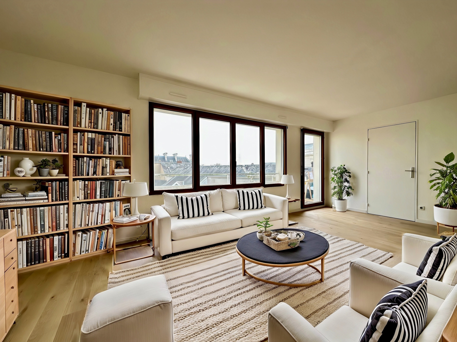 Le salon et la cuisine s'ouvrent sur un balcon côté sud.