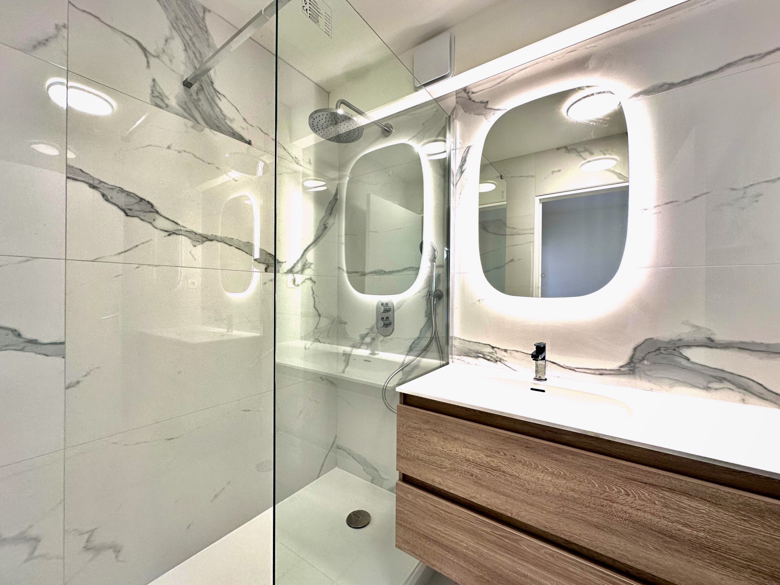 Il vous offre une vraie entrée, un vaste salon séjour et deux chambres sur parquet, une cuisine aménagée et équipée neuve, une luxueuse salle d'eau et un wc indépendant.