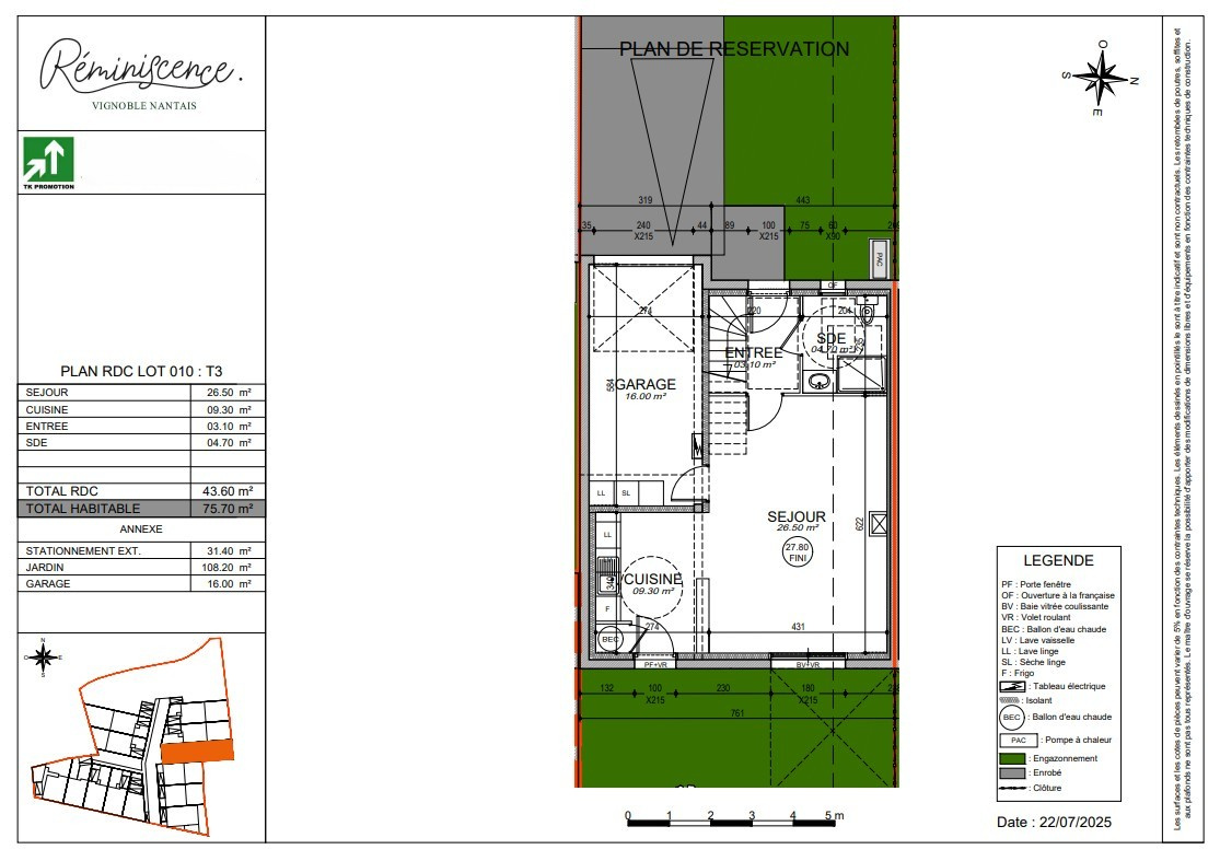 D’une surface de 75.70 m² sur un jardin privatif de 108.20 m², la maison bénéficie d'un espace intérieur lumineux comprenant au rez-de-chaussée une entrée, un séjour / salon sur cuisine de 36 m², une salle d’eau avec wc et l’accès au garage.