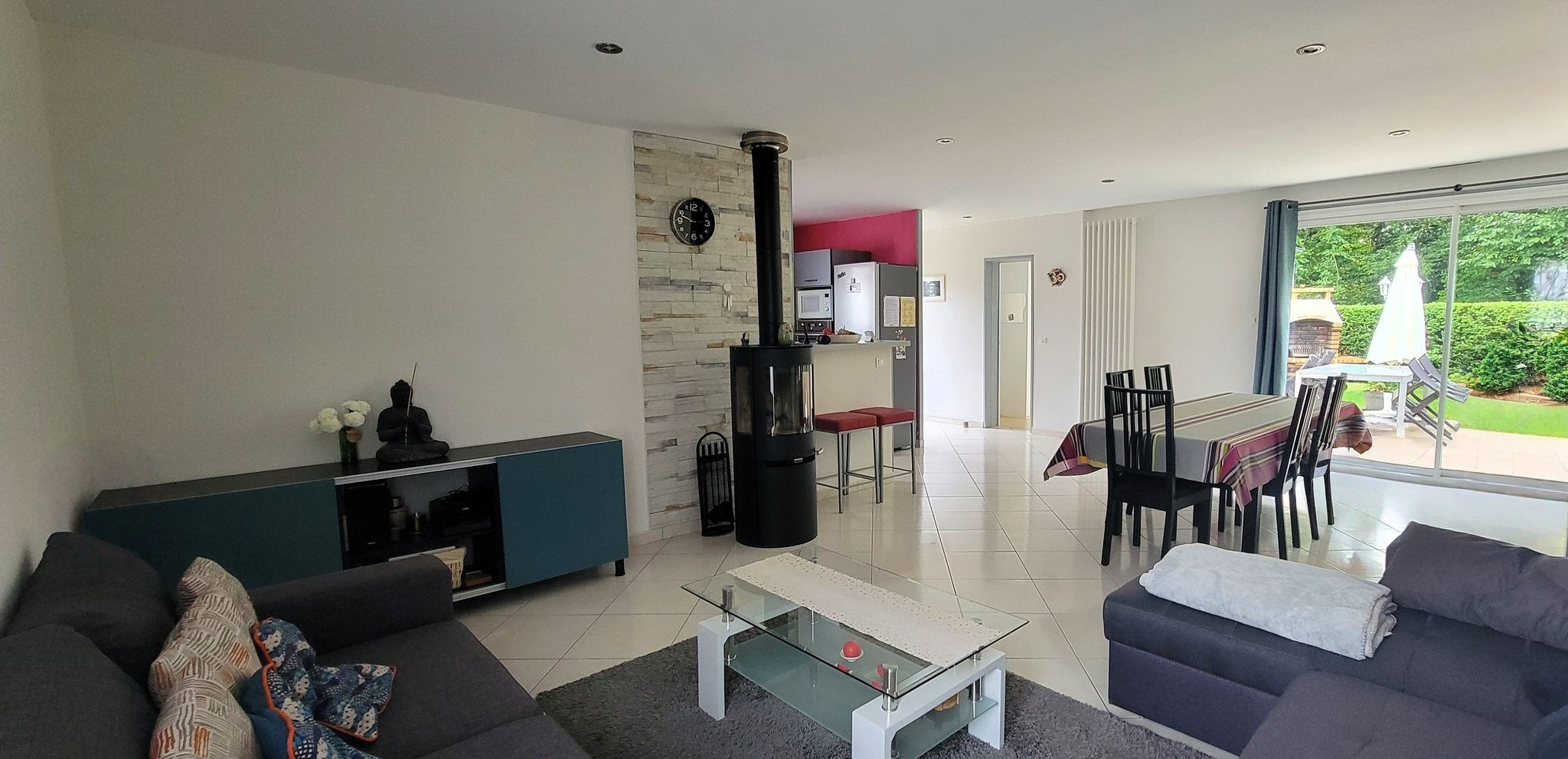 Parfaitement entretenue, elle bénéficie d’une distribution optimale et lumineuse, d’un séjour/salon traversant et agrémenté d’un poêle à bois, de nombreux rangements, d’un garage doté d’un espace de stockage en mezzanine (porte motorisée), de portes et fenêtres doubles vitrages avec volets roulants électriques, d’une chaudière gaz récente et d’un jardin entourant la maison sans vis-à-vis et contigu au parc du Chassay.