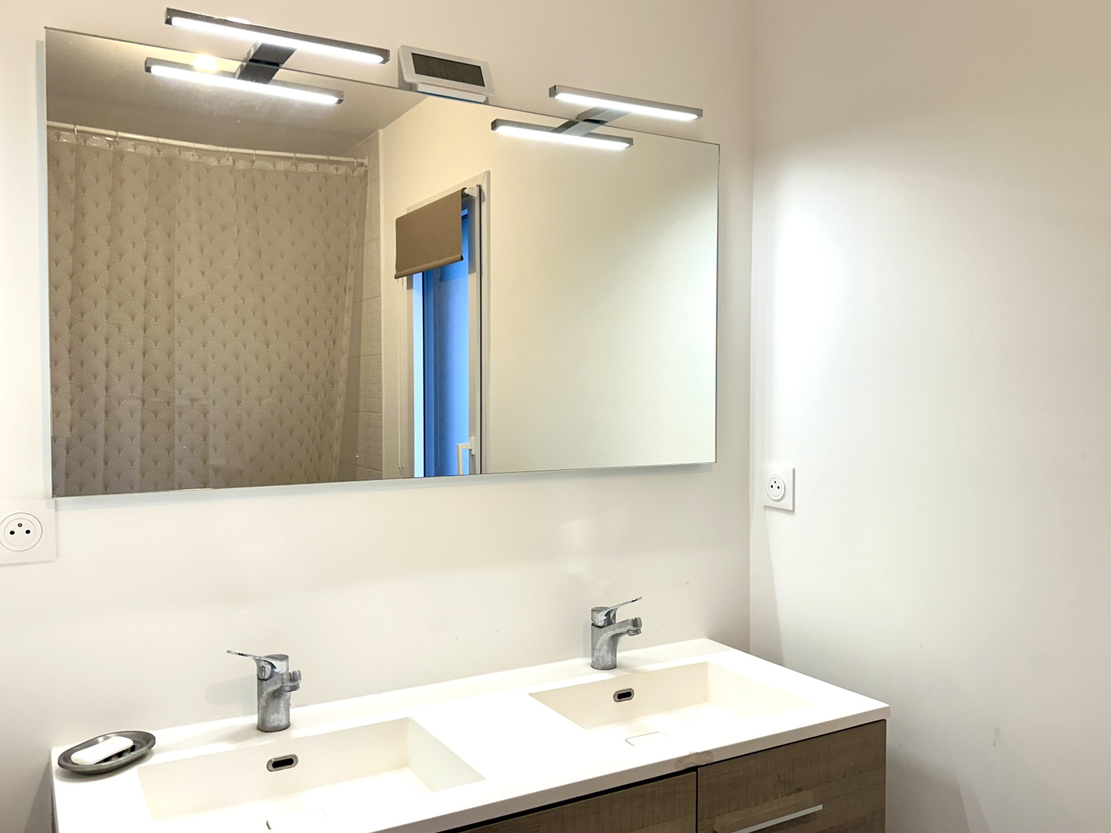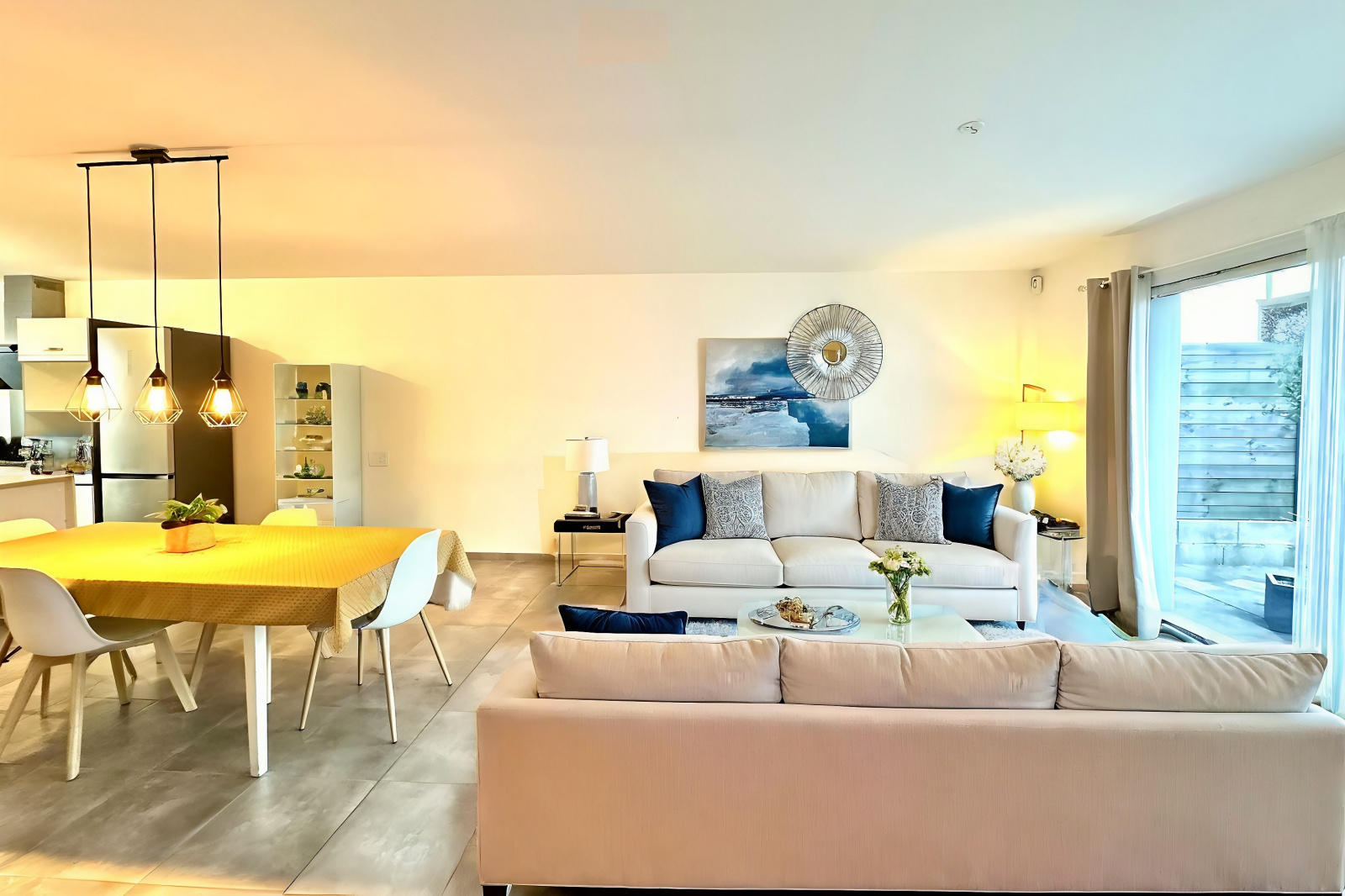 Elle se compose d’un grand séjour traversant de 54 m² avec cuisine ouverte aménagée et équipée, de trois chambres, d’une salle de bains et d’une salle d’eau.
