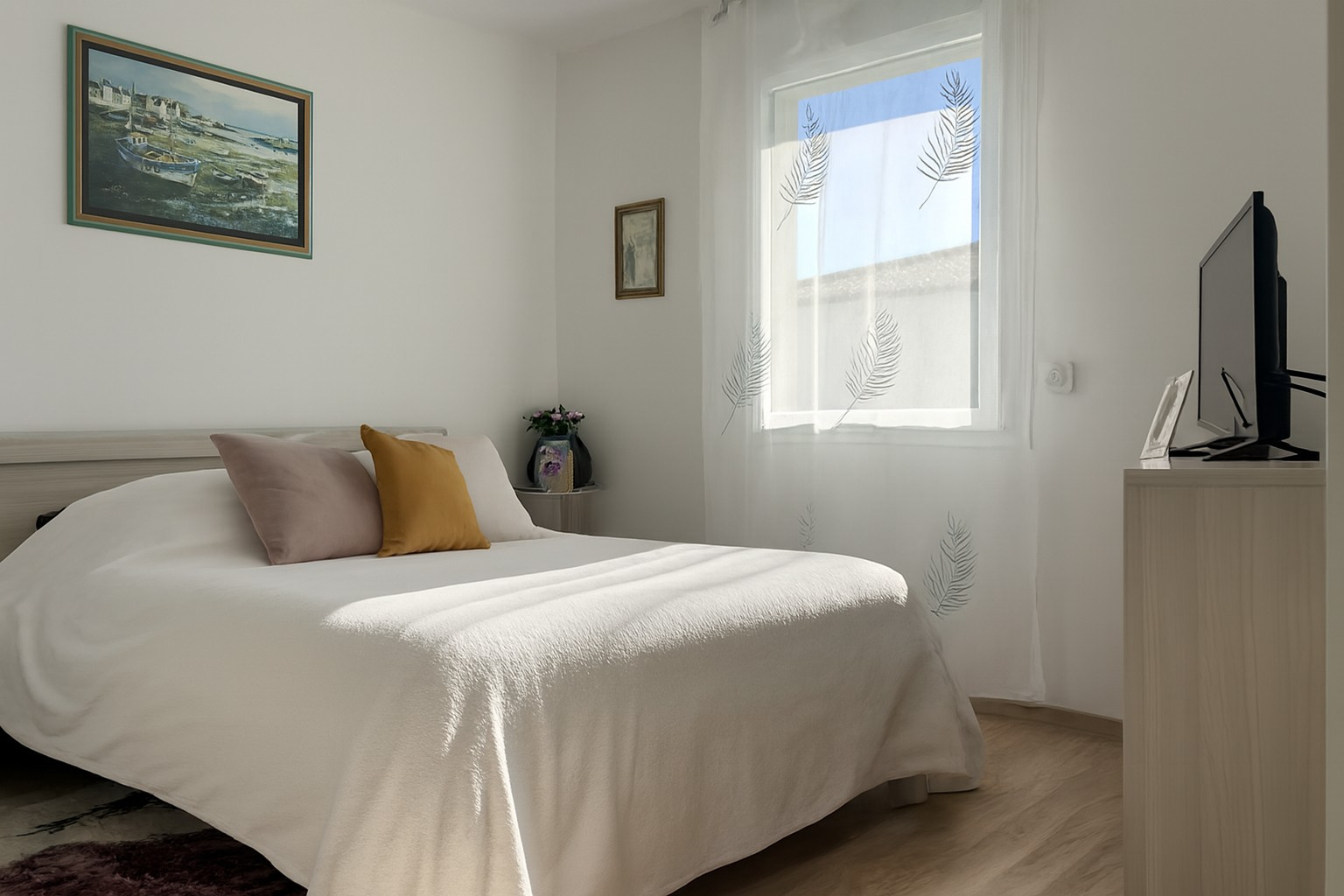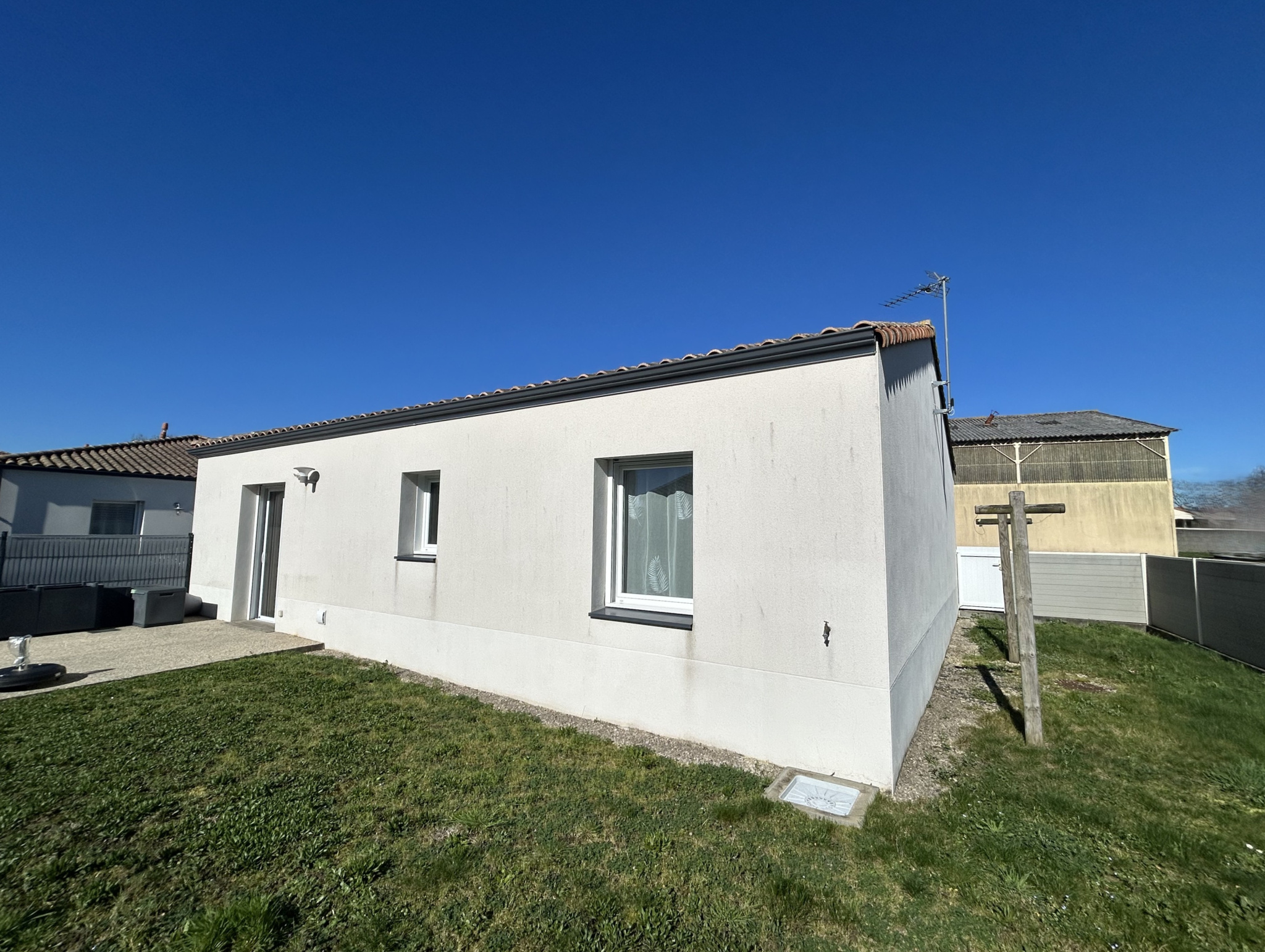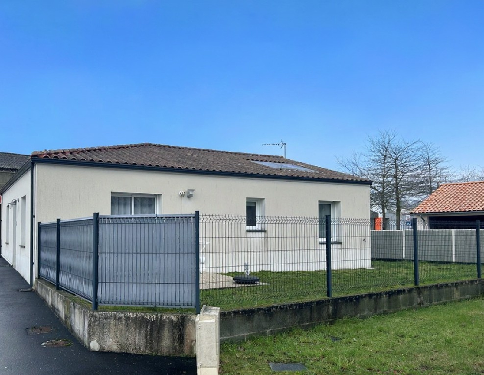Idéalement situé dans le centre de Boufféré, maison de plain-pied, aux normes PMR, de 67.40 m² comprenant une pièce de vie avec cuisine aménagée et équipée, deux chambres, une salle d'eau, un wc et un garage.