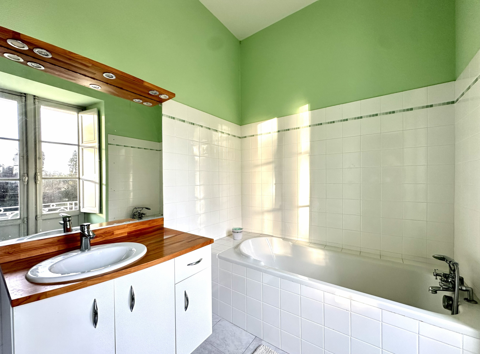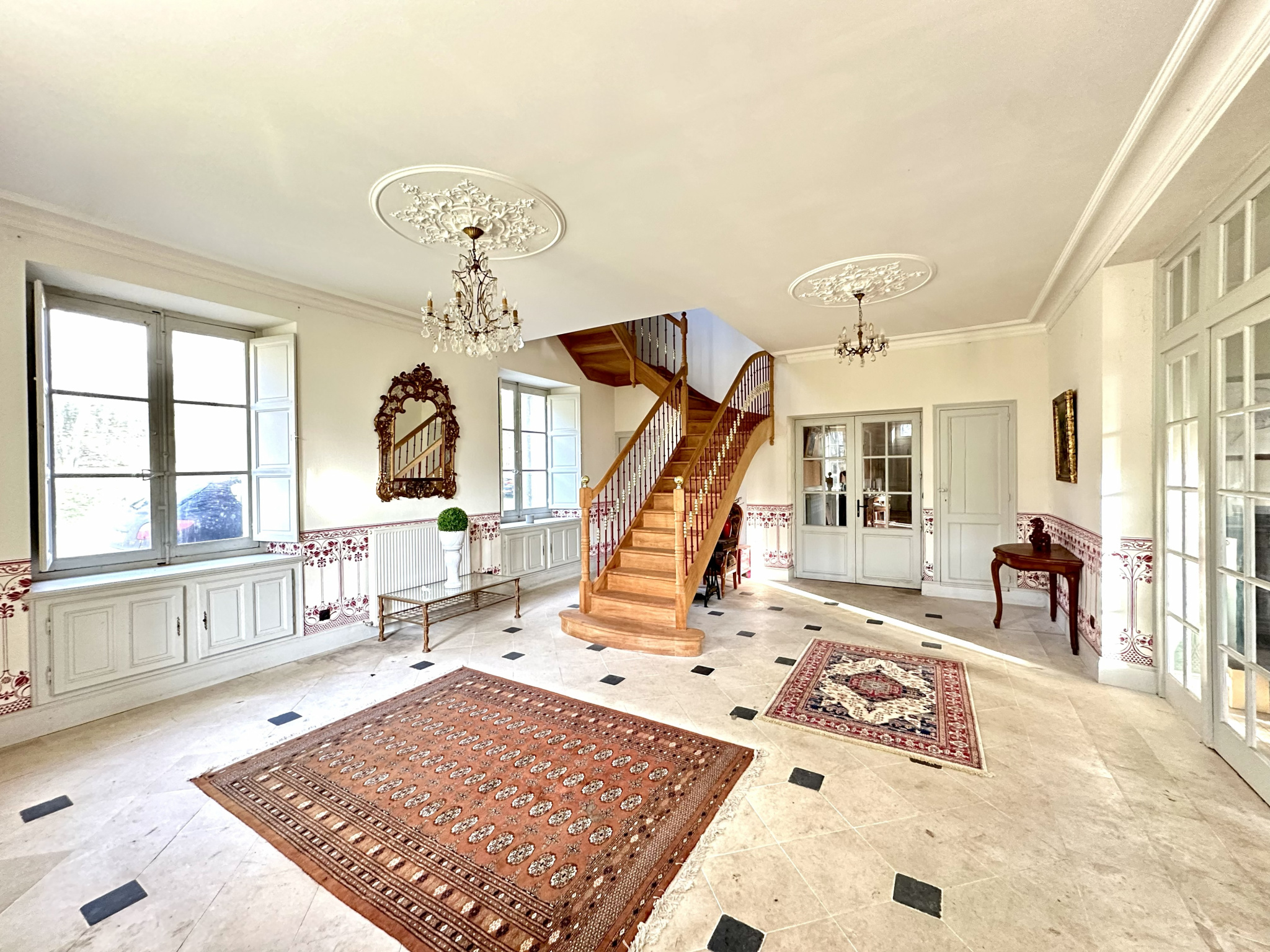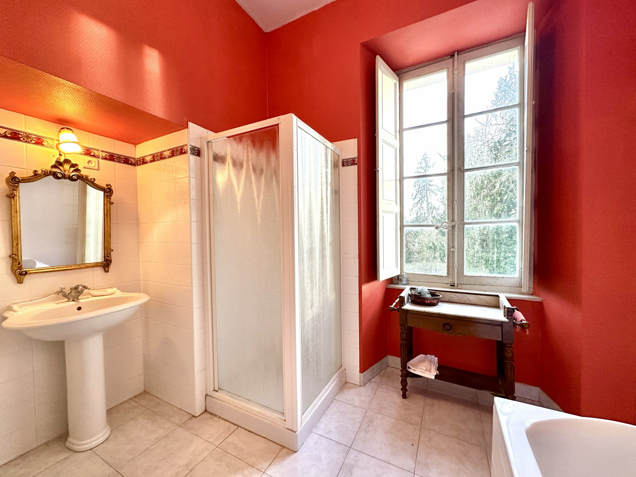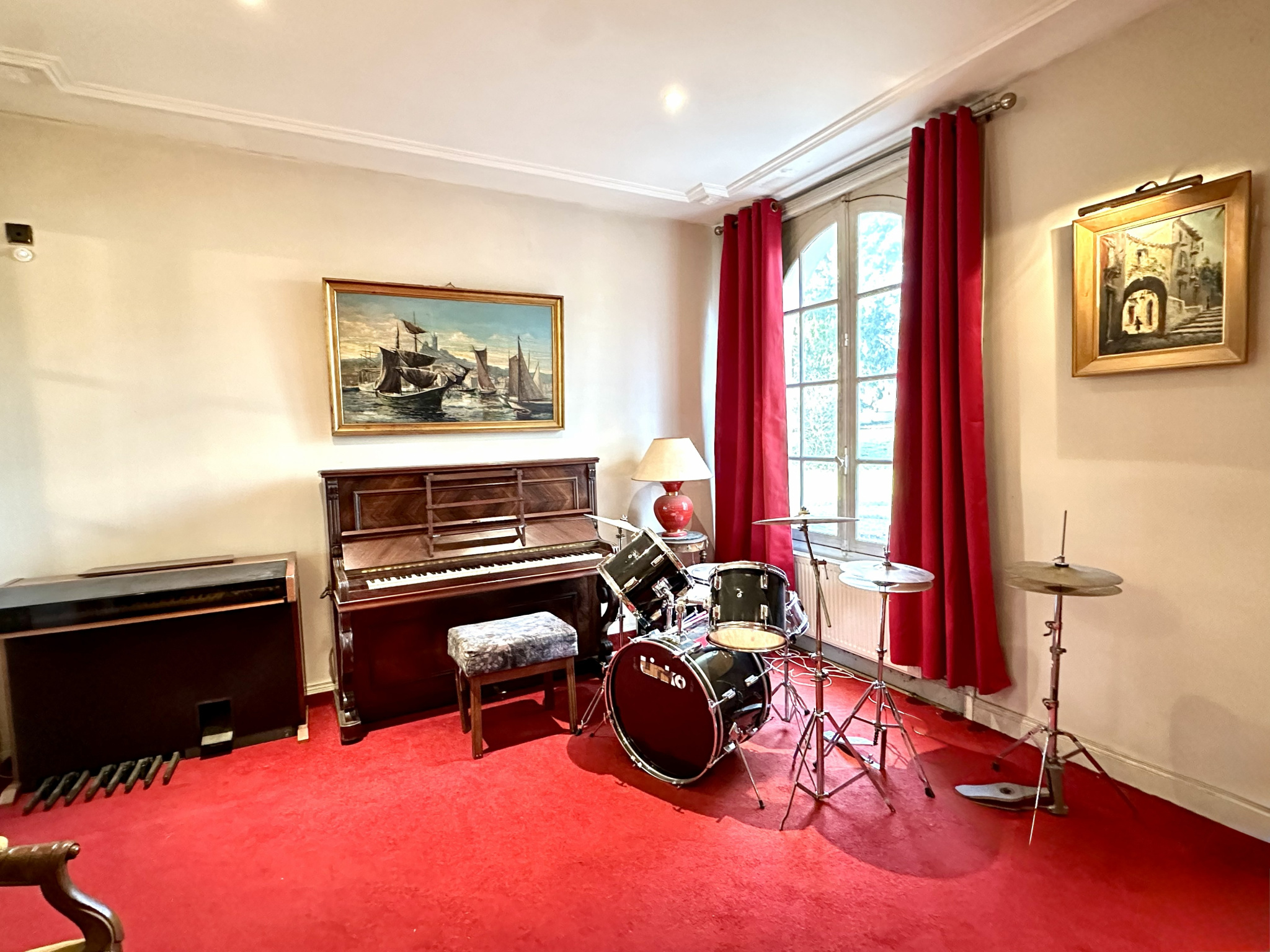 Cette belle propriété VIIIème à 1 500 m de la gare vous offrira dans la partie château, un ensemble de 200 m² de salons (salon principal : 100 m²), six grandes chambres, toutes dotées d’une salle de bains + wc.