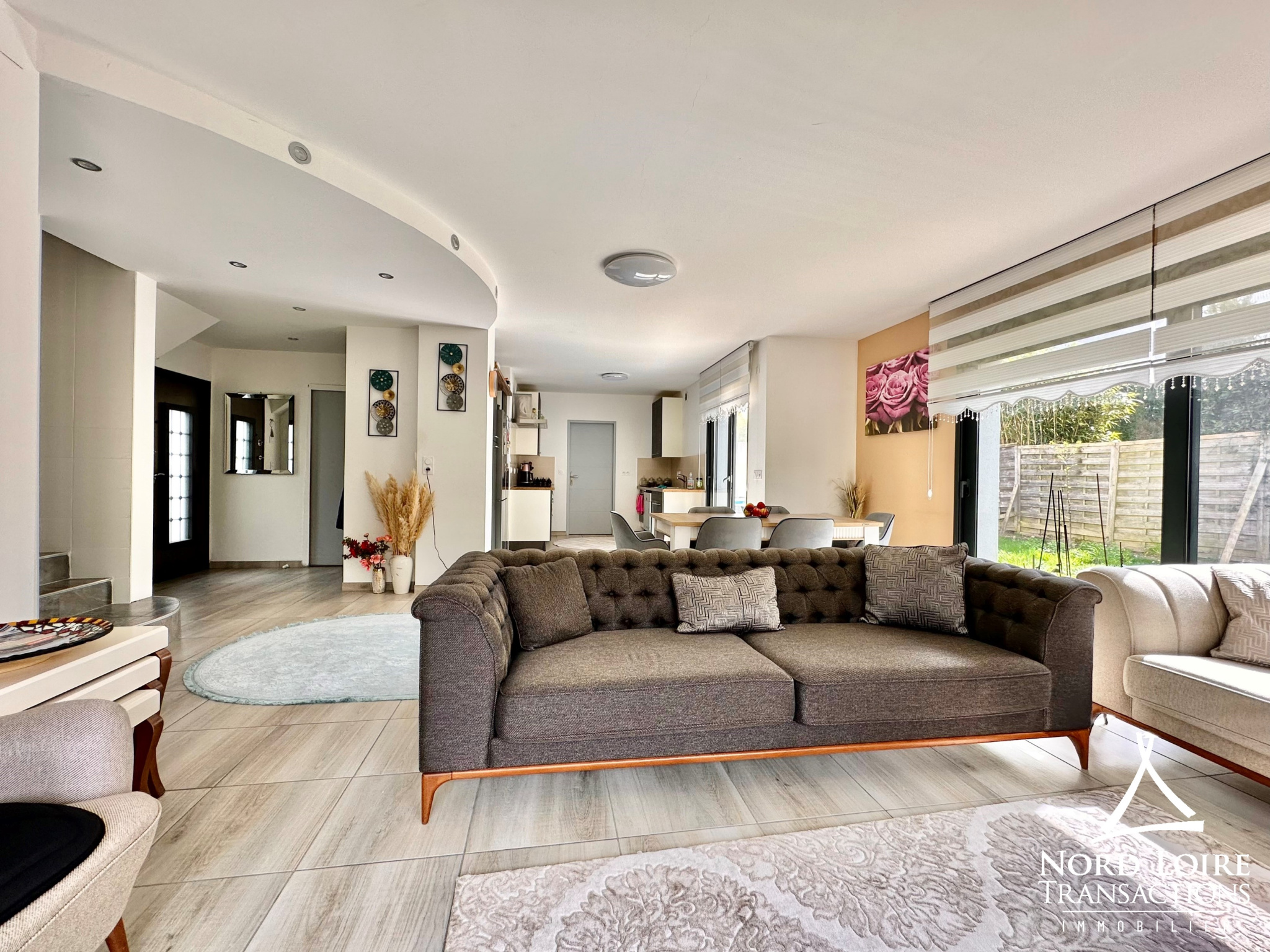 Couëron (44220)Couëron côté Sautron. Très belle maison contemporaine de 129 m2 habitables offrant : entrée avec placards, pièce de réception lumineuse de 44 m2 comprenant séjour et cuisine équipée, suite parentale en rez-de-chaussée, trois autres chambres, salle de bains et salle d’eau.