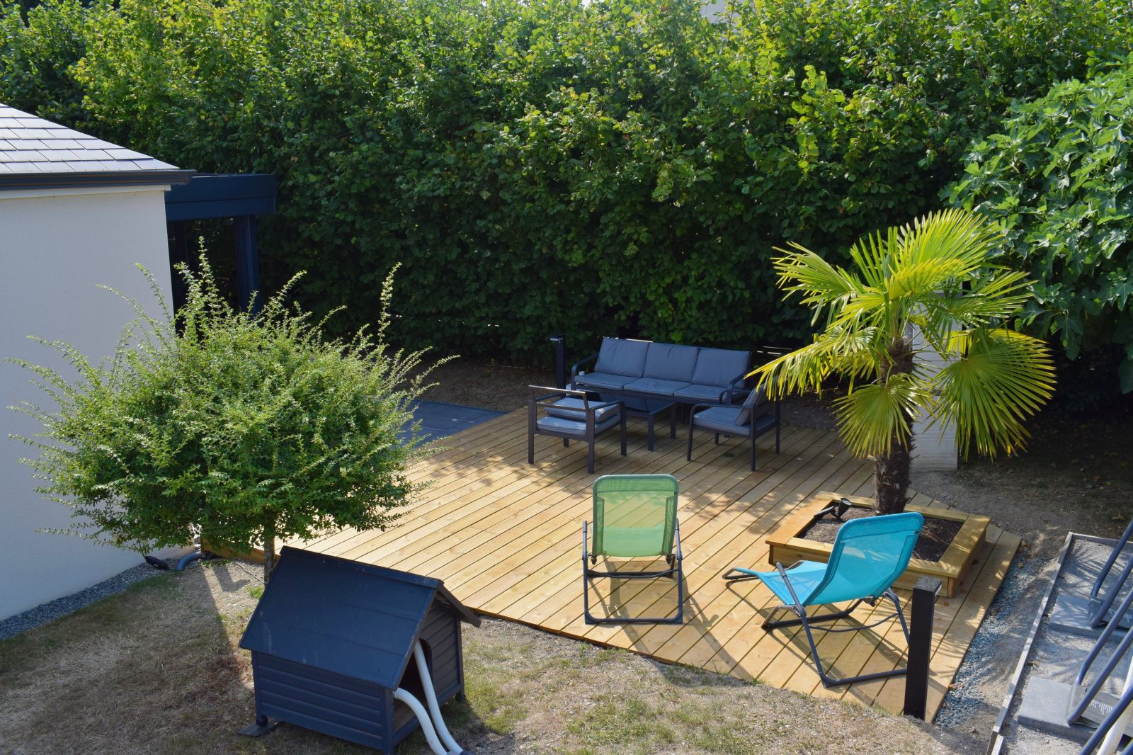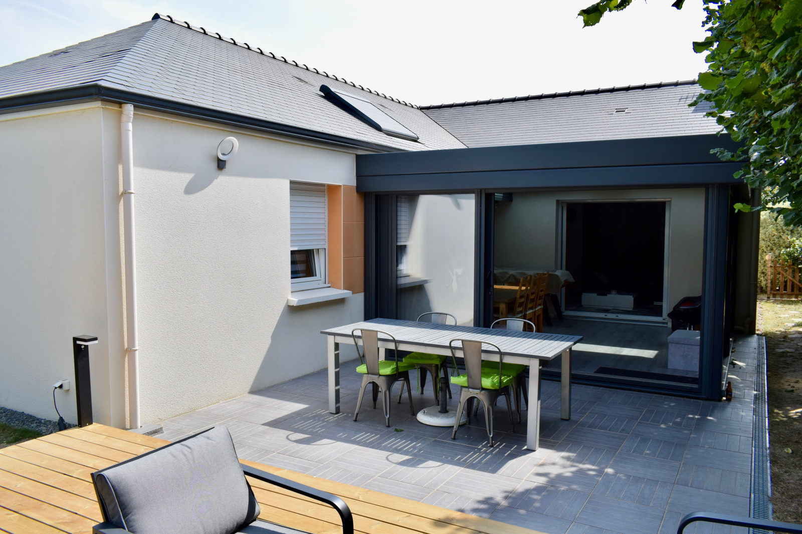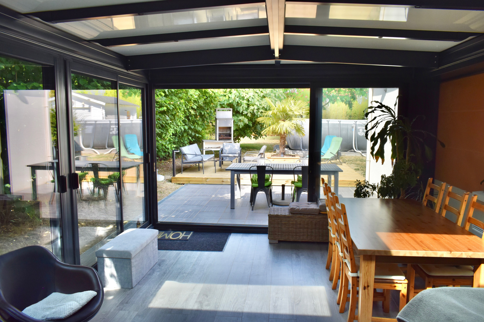 A l’extérieur profitez d’un jardin paysager avec sa piscine hors-sol, grande terrasse éclairée et barbecue pour passer de bons moments en famille et entre amis. Un second garage indépendant complète l’ensemble.