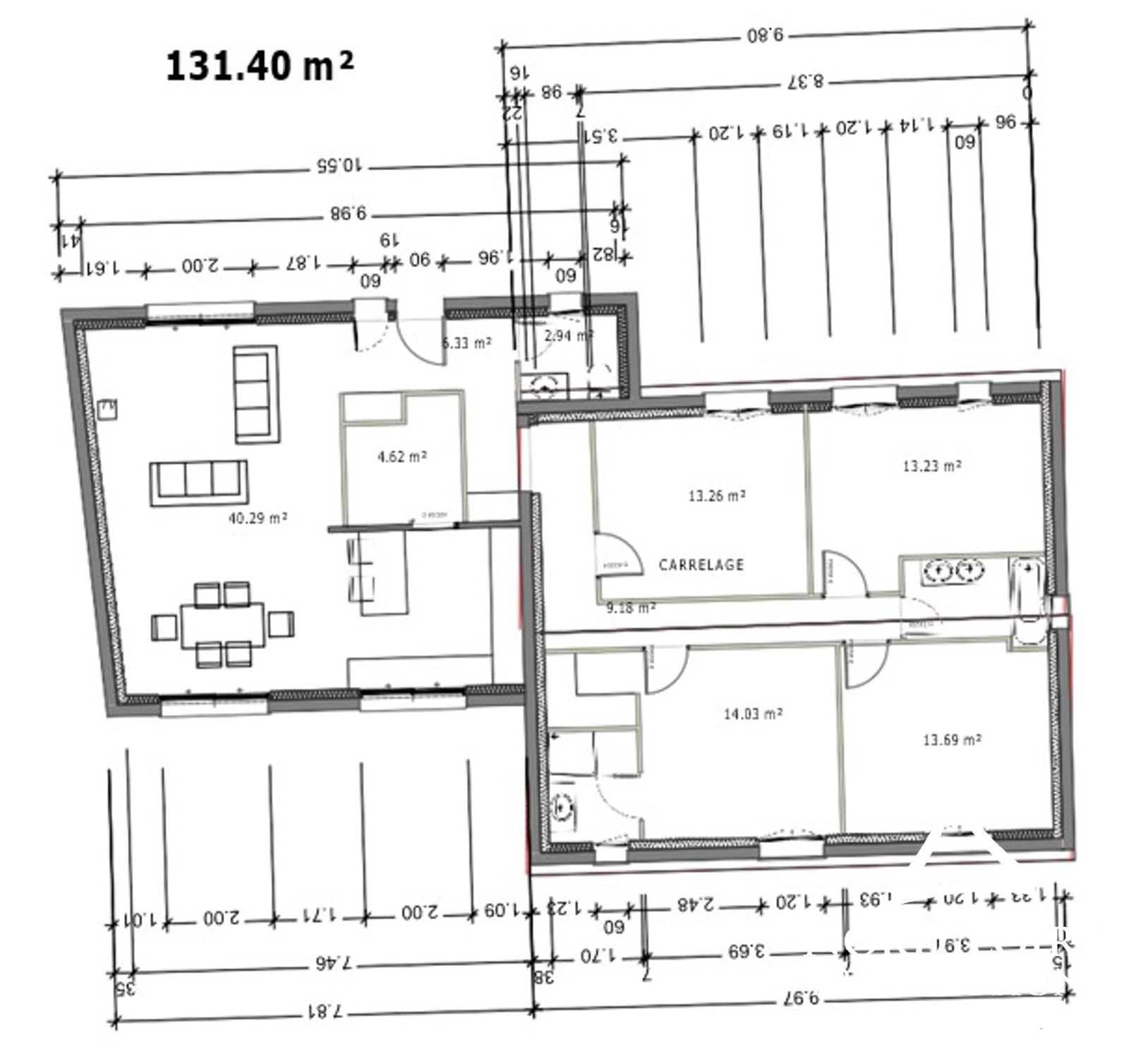 Le Temple-de-Bretagne (44360)Maison neuve plain-pied de 130 m² sur terrain d’environ 500 m² offrant toutes les prestations actuelles, une très belle pièce de vie de 46 m2 ouverte sur cuisine à personnaliser à votre goût.