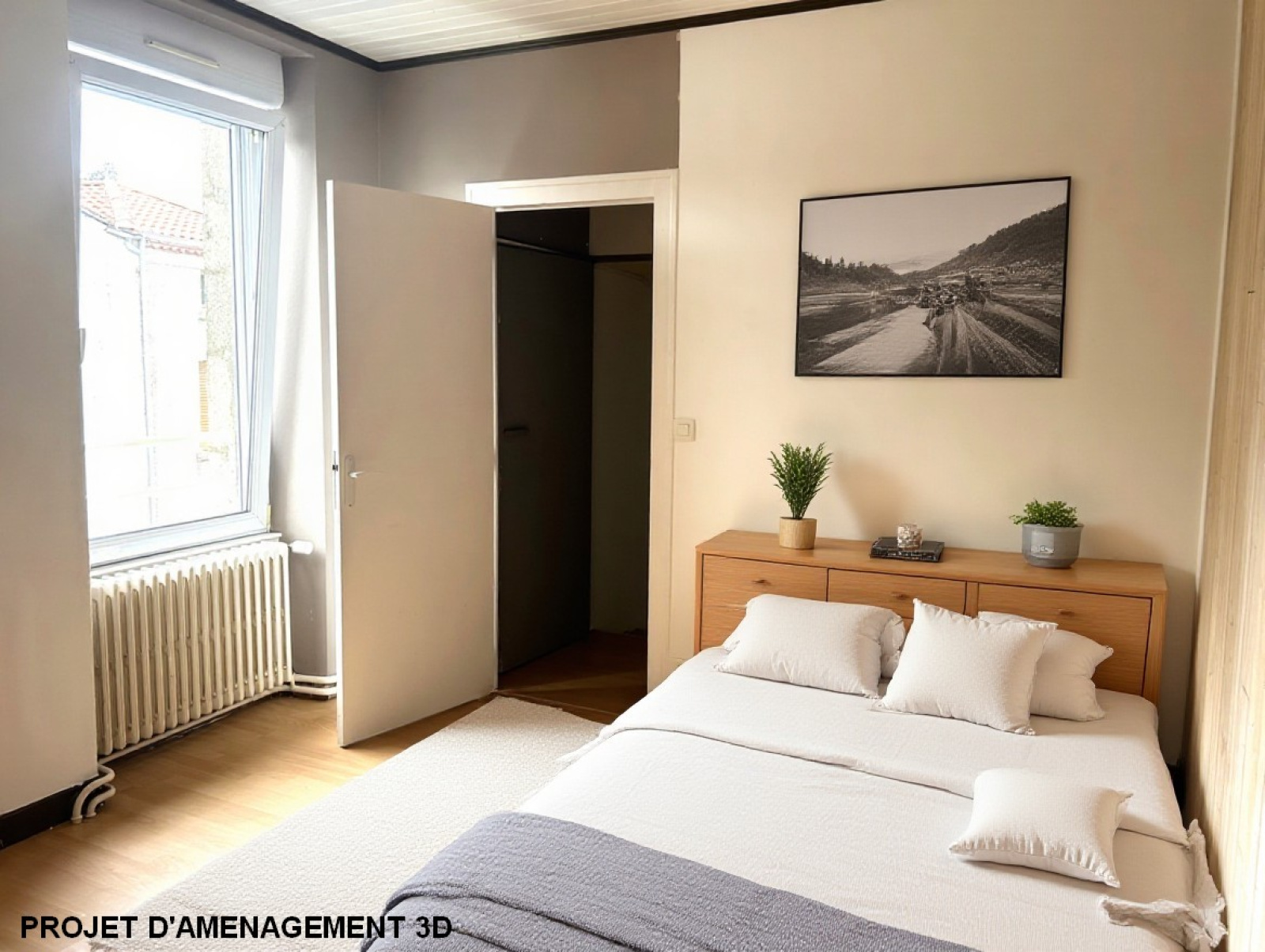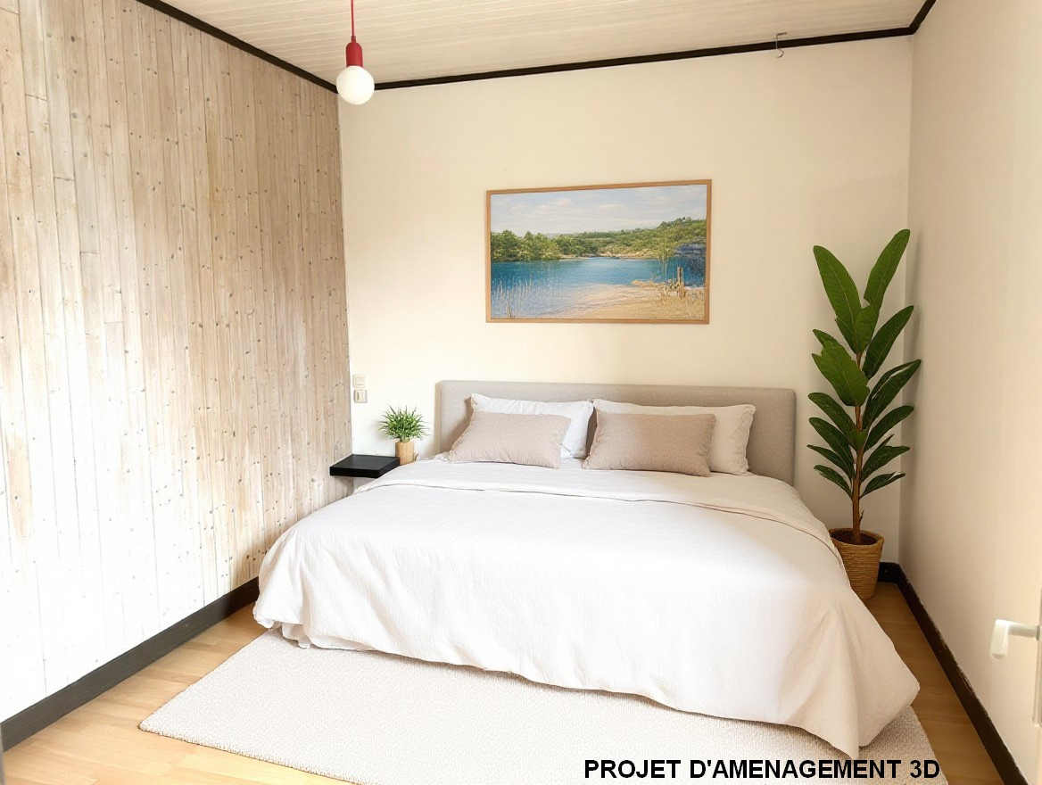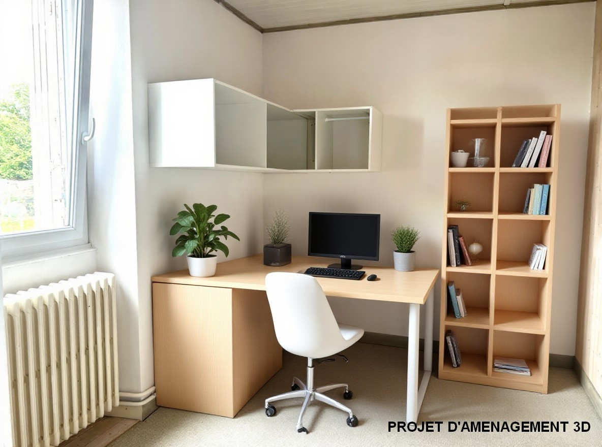 L'étage est composé d'une chambre, d'un bureau, d'une salle de bain et d'un sanitaire.
