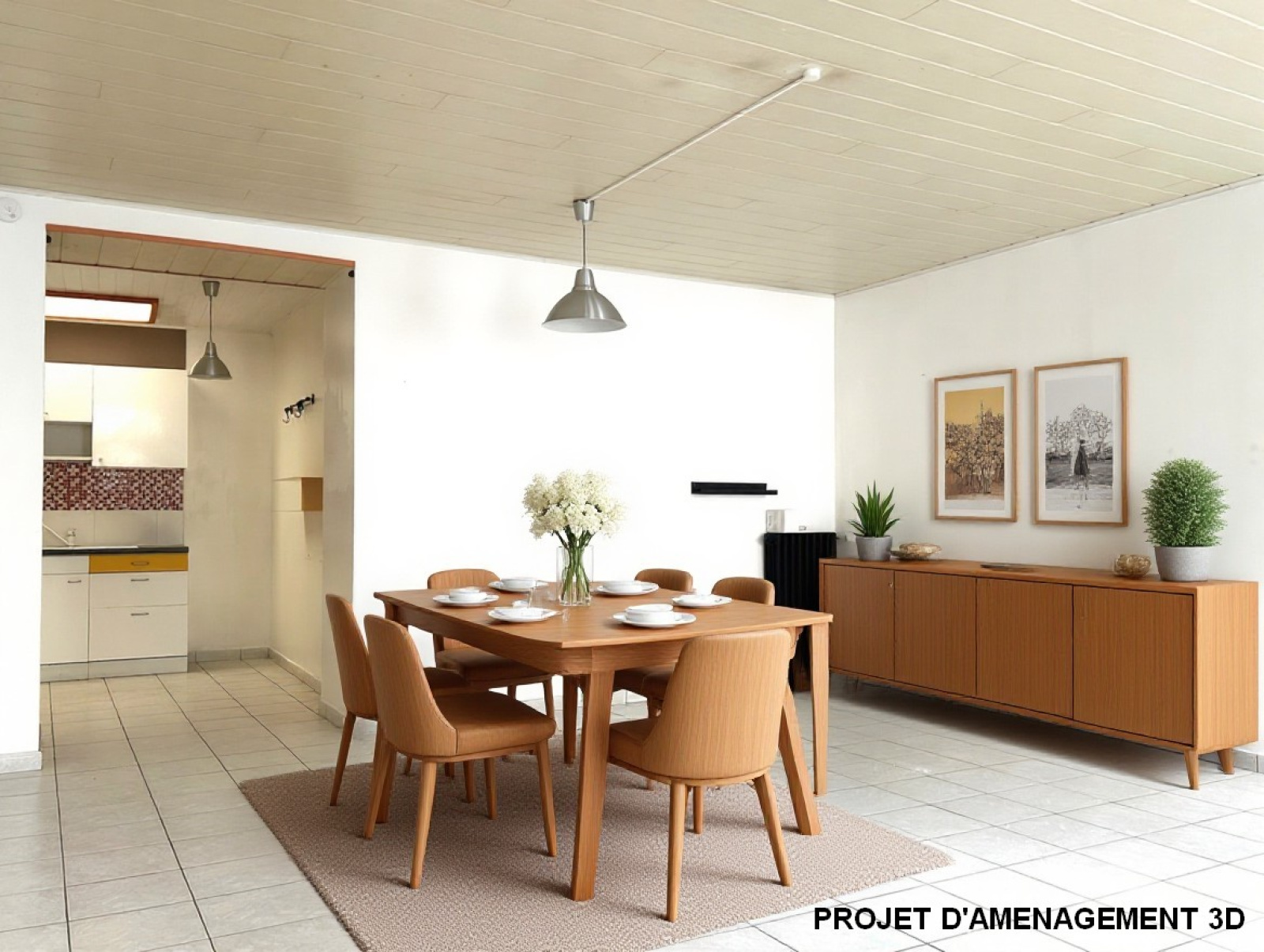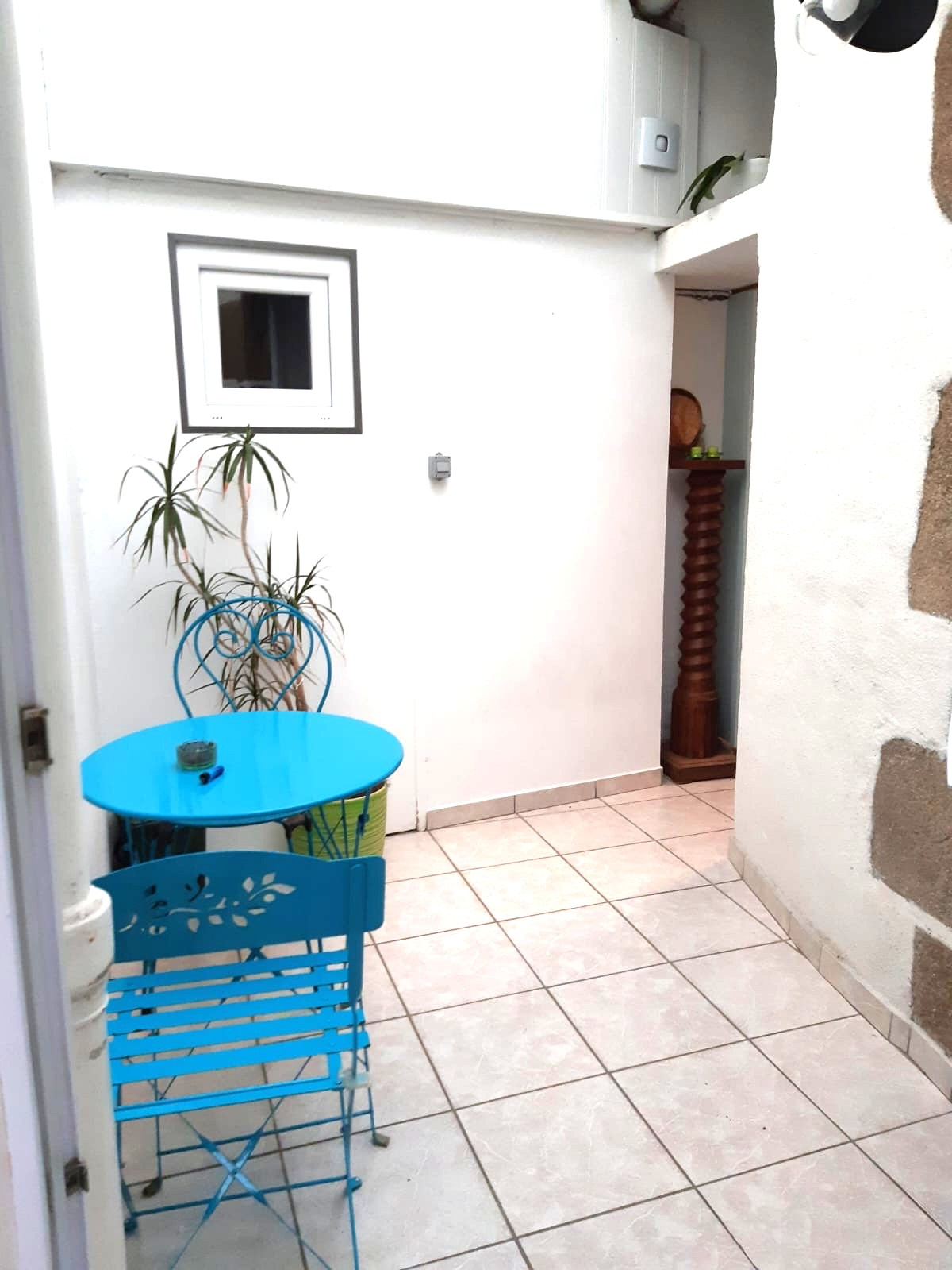Un patio couvert de 5 m² permet d'accéder aux dépendances : buanderie, garage, chaufferie, grenier.