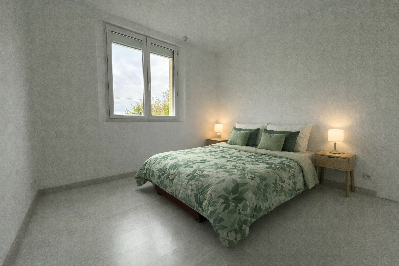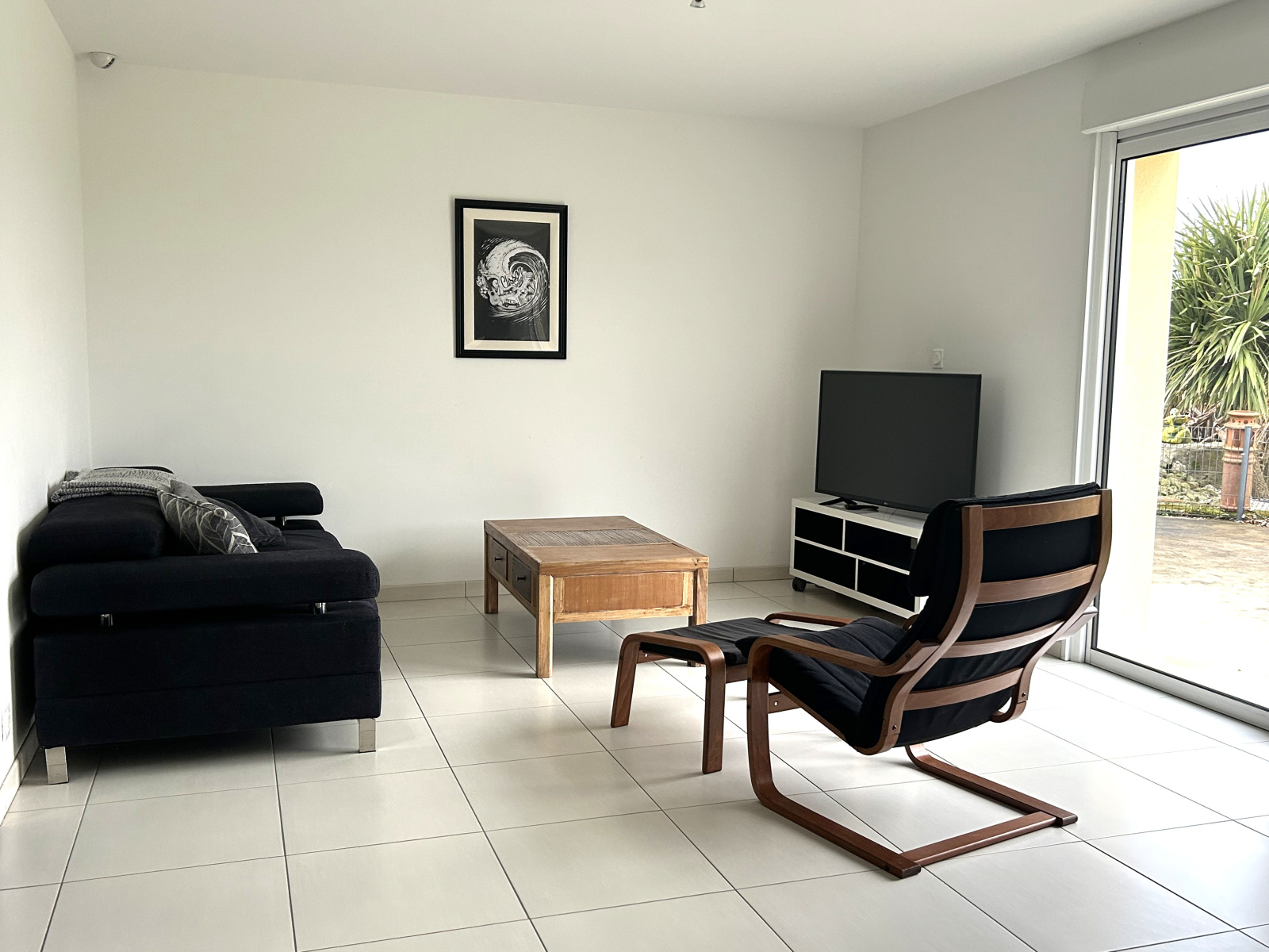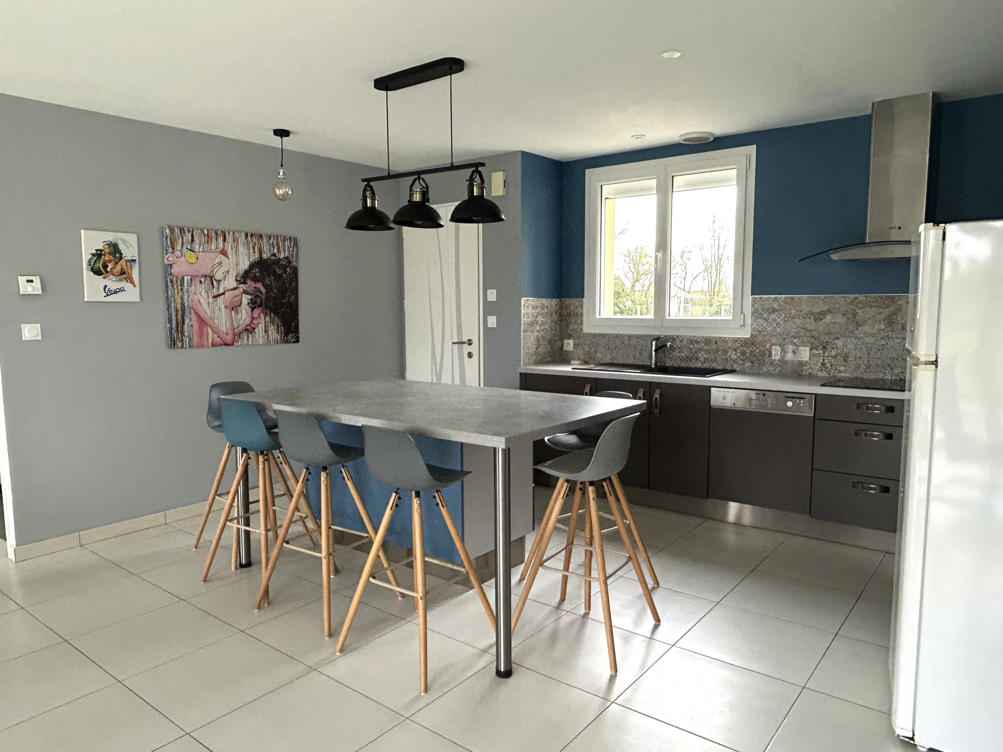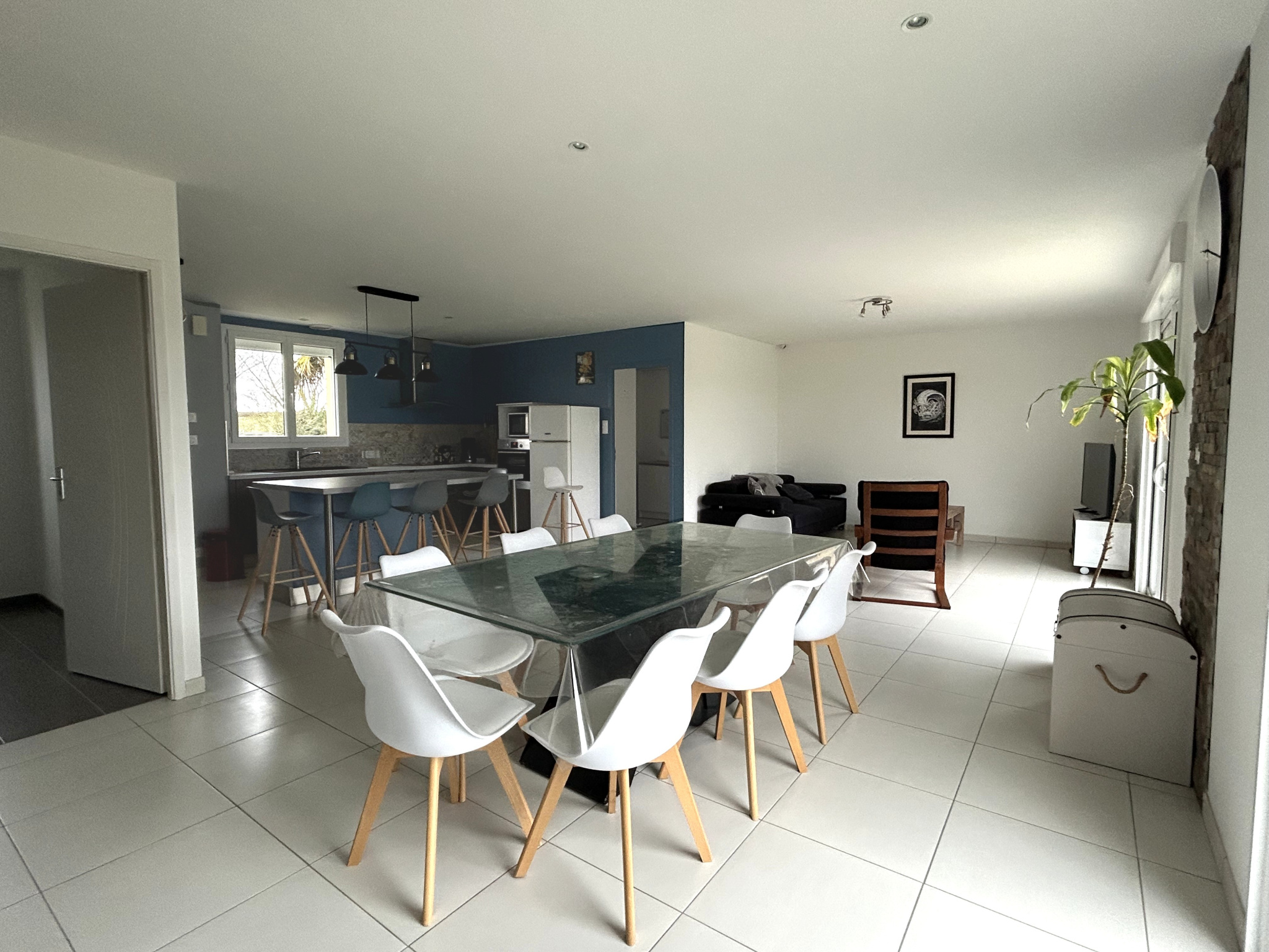 La maison est distribuée ainsi : une pièce de vie très lumineuse donnant sur la terrasse, une cuisine équipée, une buanderie, 3 chambres avec placards, un bureau, une salle d’eau et un WC indépendant.